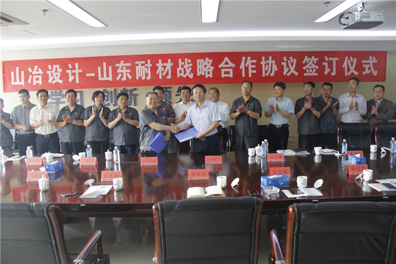 2019年5月16日,山冶設計與山東耐材戰略合作協議在濟南山冶設計辦公樓簽訂。山鋼集團黨委委員、副總經理王向東,戰略規劃部副部長郝之峰,山冶設計董事長魏新民,總經理衣忠德,副總經理宋志順,山東耐材集團黨委書記、董事長車連房,黨委副書記、總經理李文亮,副總經理王文學、張延敏及相關人員出席了簽訂儀式。
