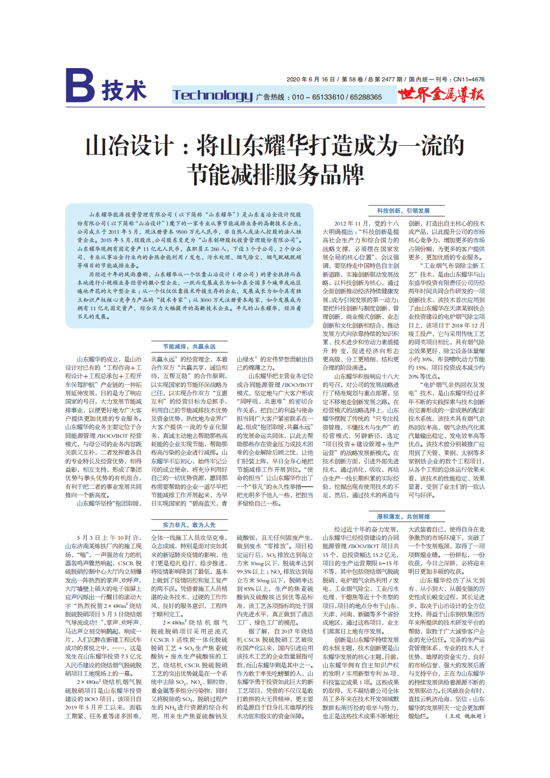 山冶設計:將山東耀華打造成為一流的節能減排服務品牌